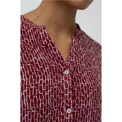 Annex is een geprint overhemd met maokraag, pofmouwen en knoopsluiting aan de voorkant. Combineer het met de Arrayan rok voor een complete look.