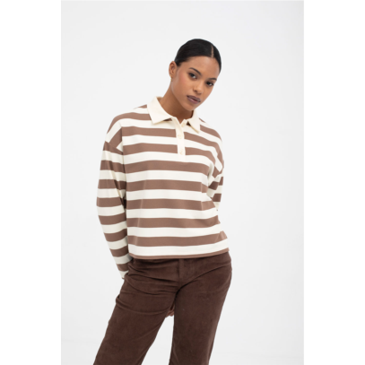 Pedralbes is een polo met lange mouwen en brede strepen. Met een geribbelde kraag en knoopsluiting in dezelfde kleur. Ideaal voor een casual look.