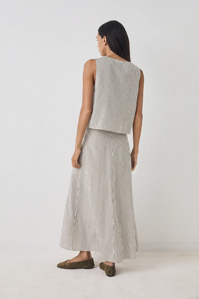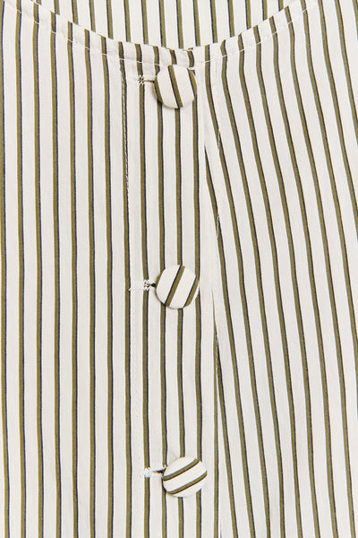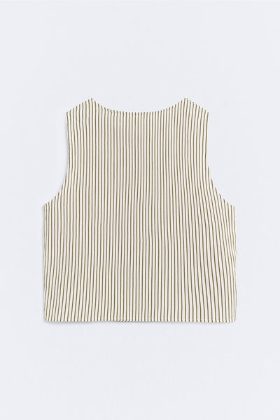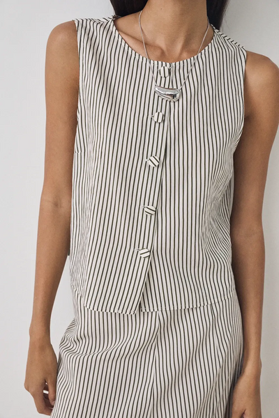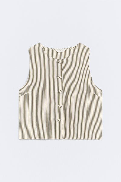 Gestreepte top met bandjes. Ronde hals. Bedekte knoopsluiting. Lengte kledingstuk voor maat S: 50,5 cm.