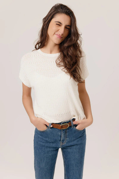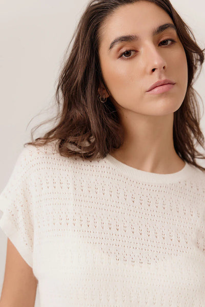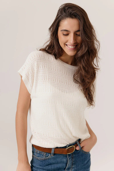 Fijngebreide top, opengewerkt, recht en soepel vallend model. Lichtgewicht en comfortabel.