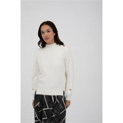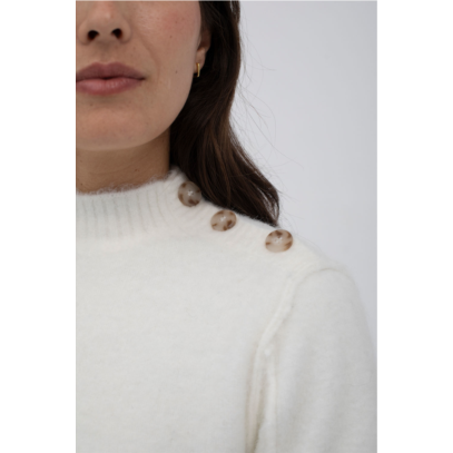 Coltrui met lange mouwen en knoopdetail aan de zijkant van de kraag en schouder. De manchetten zijn geknoopt voor een elegante plooi, wat een unieke en verfijnde touch geeft.