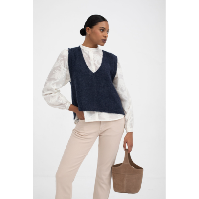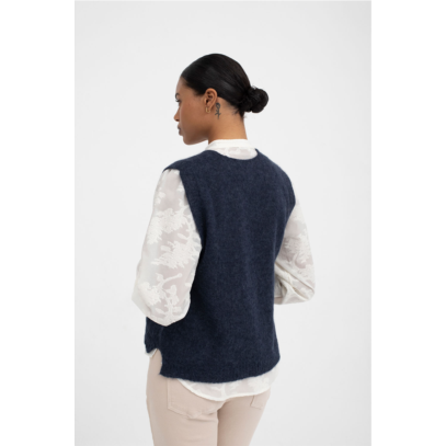 Effen gebreid vest met V-hals. Een veelzijdig en elegant all-over gebreid kledingstuk dat elke look compleet maakt.