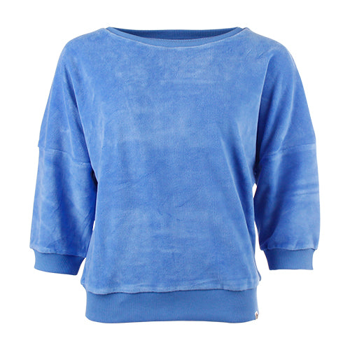 Deze sweater met ronde hals zit wat losser bij het bovenlichaam en sluit meer aan bij de mouwen(3/4)